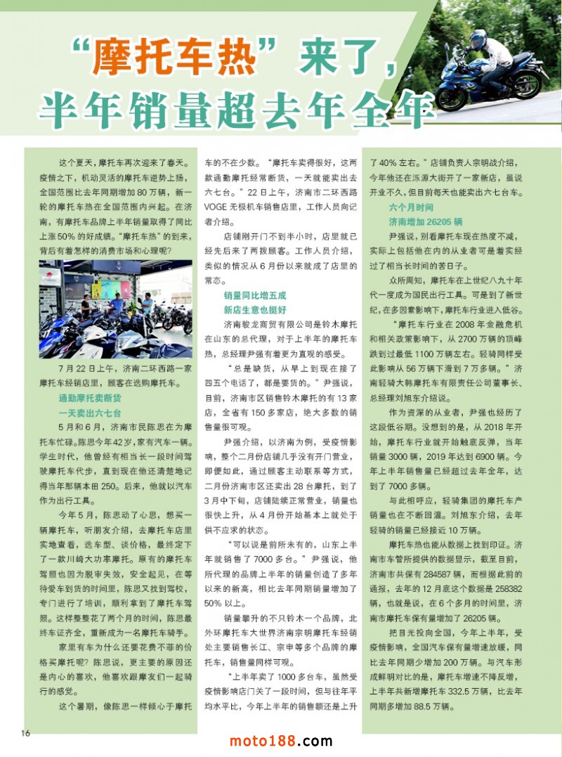 2020年注定是一個不平凡的年頭,今年的新冠疫情正在全球流行,病毒無時無刻不在向人類發(fā)起攻擊。我們國內(nèi)除年初,一場大的疫情被控制外,在不同的地區(qū)分別出現(xiàn)了小規(guī)模的流行,對我國的經(jīng)濟帶來了一定程度的影響,對我們行業(yè)最直接的影響就是上半年的杭州全國摩托車展會不得不取消。祈禱下半年疫情不要反撲,我們廣州的全摩會能順利的召開,讓全國的同仁有一個相聚的機會。