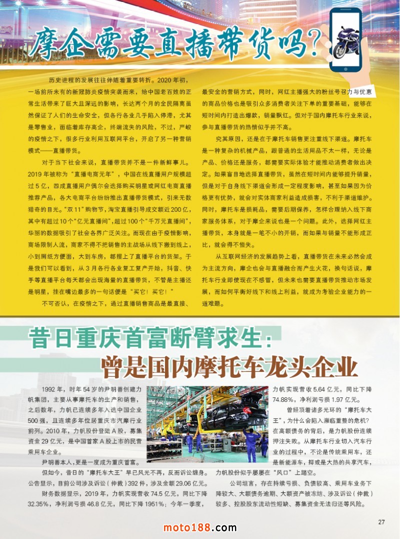 按照今年的出刊計(jì)劃,我們今年第3、8、11月期雜志,仍按照原計(jì)劃正常出刊。上半年會(huì)議的《會(huì)刊》因?yàn)楹贾輹?huì)議推遲的特殊原因,沒(méi)能出刊。今年《電摩與配件》依然是在砥礪前行,我們將傳統(tǒng)媒體和新媒體結(jié)合,根據(jù)市場(chǎng)的需要,不斷地調(diào)整和適應(yīng),通過(guò)我們的努力,我們的媒體在今年不光沒(méi)有發(fā)生萎縮的現(xiàn)象,又進(jìn)一步夯實(shí)了基礎(chǔ)。