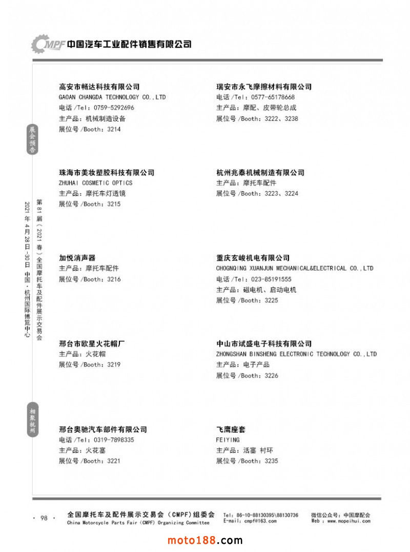 內(nèi)98 第80屆(2020秋)全國(guó)摩托車(chē)及配件展示交易會(huì)-廣州站參展企業(yè)信息
