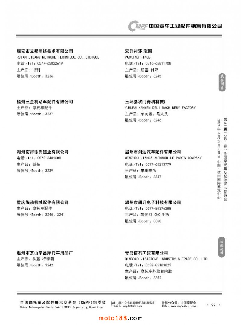 內99 第80屆(2020秋)全國摩托車及配件展示交易會-廣州站參展企業(yè)信息