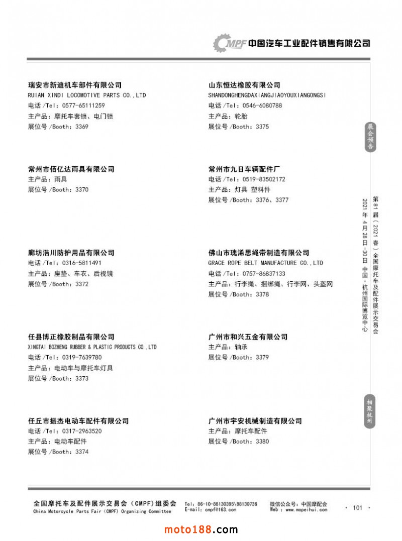 內(nèi)101 第80屆(2020秋)全國摩托車及配件展示交易會-廣州站參展企業(yè)信息