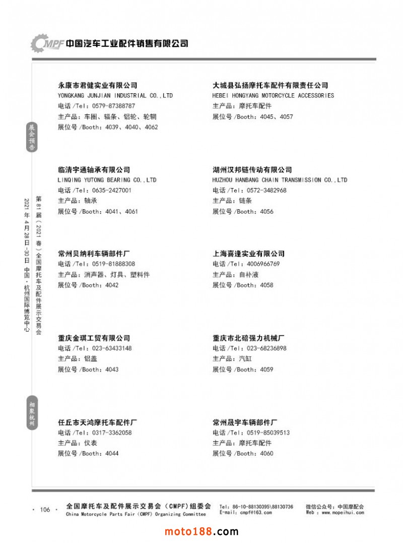 內(nèi)106 第80屆(2020秋)全國摩托車及配件展示交易會-廣州站參展企業(yè)信息