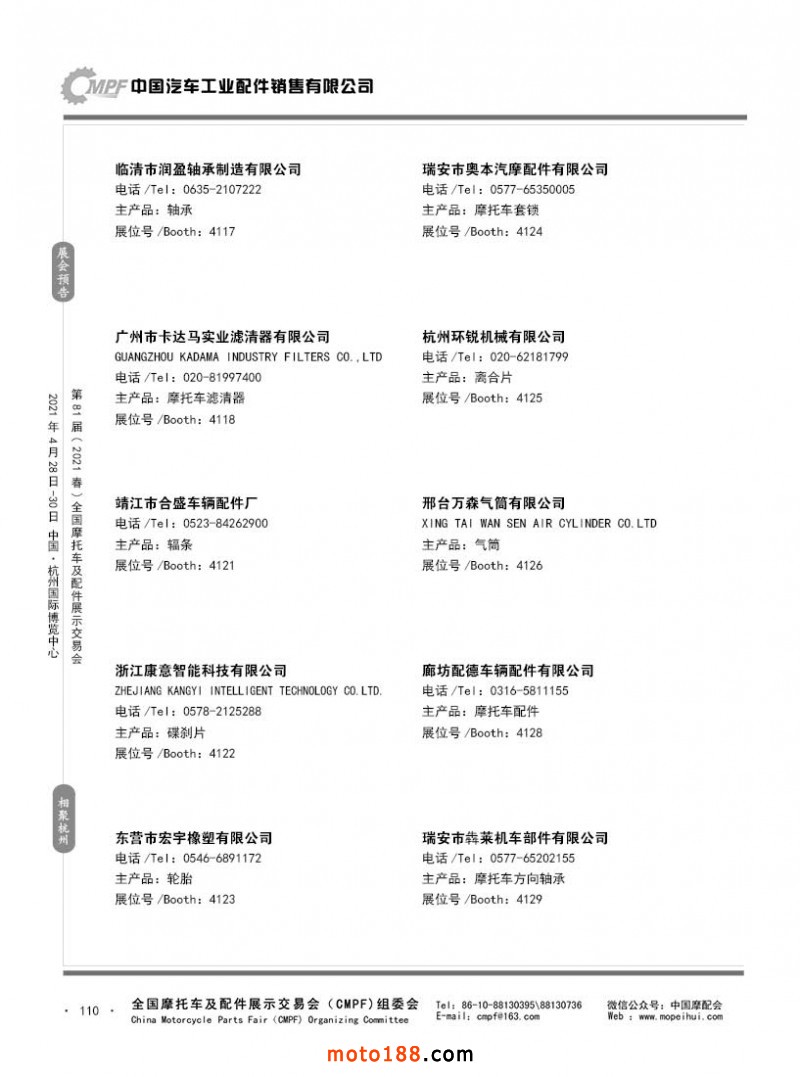 內(nèi)110 第80屆(2020秋)全國摩托車及配件展示交易會-廣州站參展企業(yè)信息