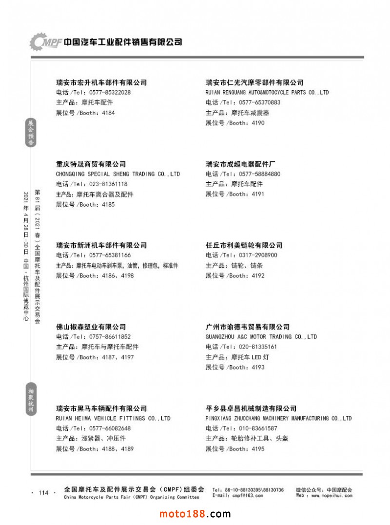 內(nèi)114 第80屆(2020秋)全國摩托車及配件展示交易會(huì)-廣州站參展企業(yè)信息