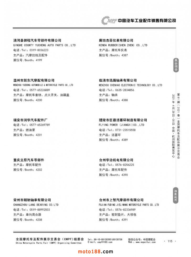 內(nèi)115 第80屆(2020秋)全國摩托車及配件展示交易會(huì)-廣州站參展企業(yè)信息