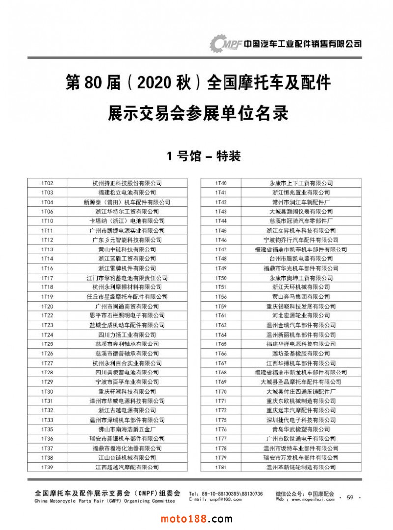 內(nèi)59 第80屆(2020秋)全國摩托車及配件展示交易會-廣州站參展單位名錄