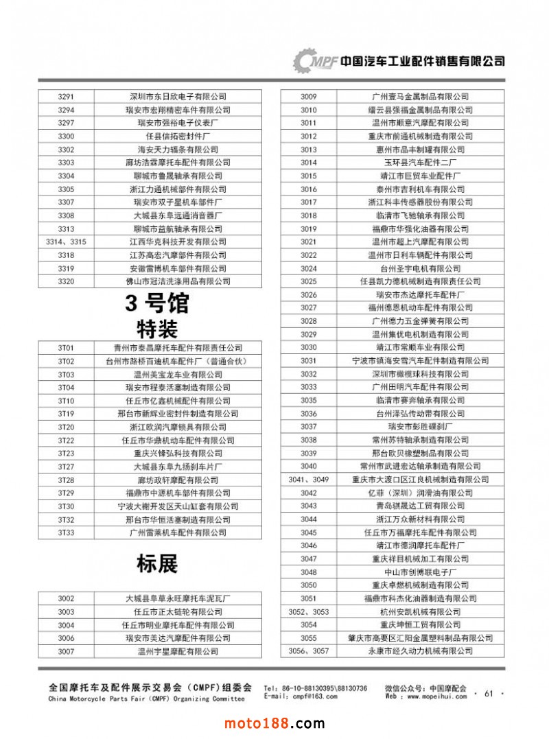 內(nèi)61 第80屆(2020秋)全國摩托車及配件展示交易會-廣州站參展單位名錄