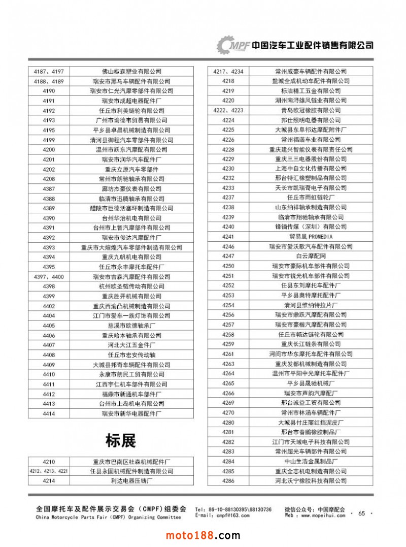 內(nèi)65 第80屆(2020秋)全國摩托車及配件展示交易會-廣州站參展單位名錄