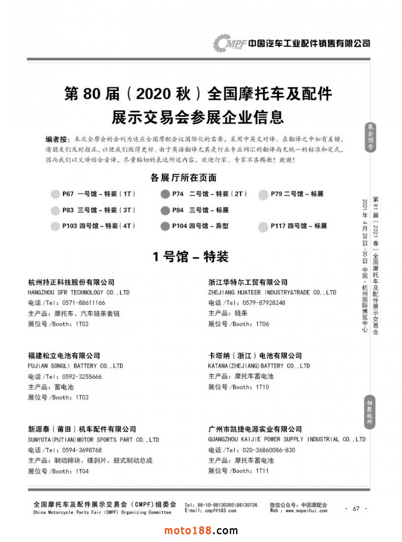 內(nèi)67 第80屆(2020秋)全國摩托車及配件展示交易會-廣州站參展企業(yè)信息
