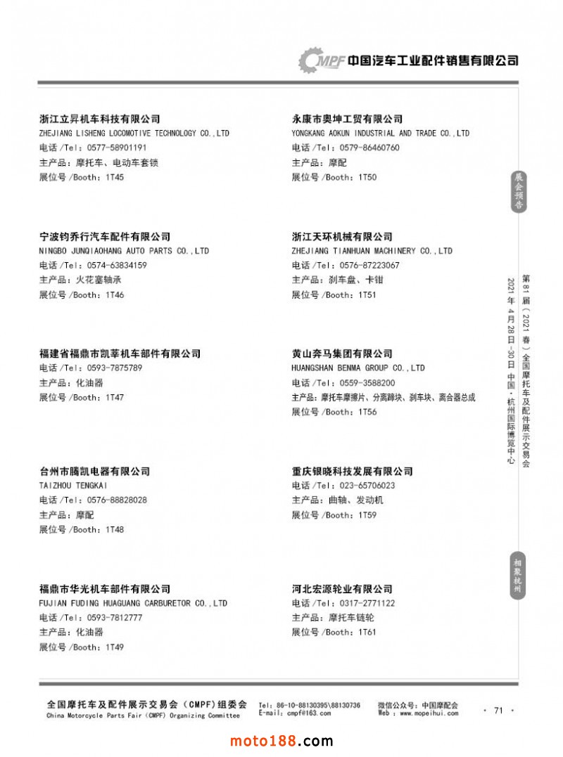內(nèi)71 第80屆(2020秋)全國摩托車及配件展示交易會-廣州站參展企業(yè)信息