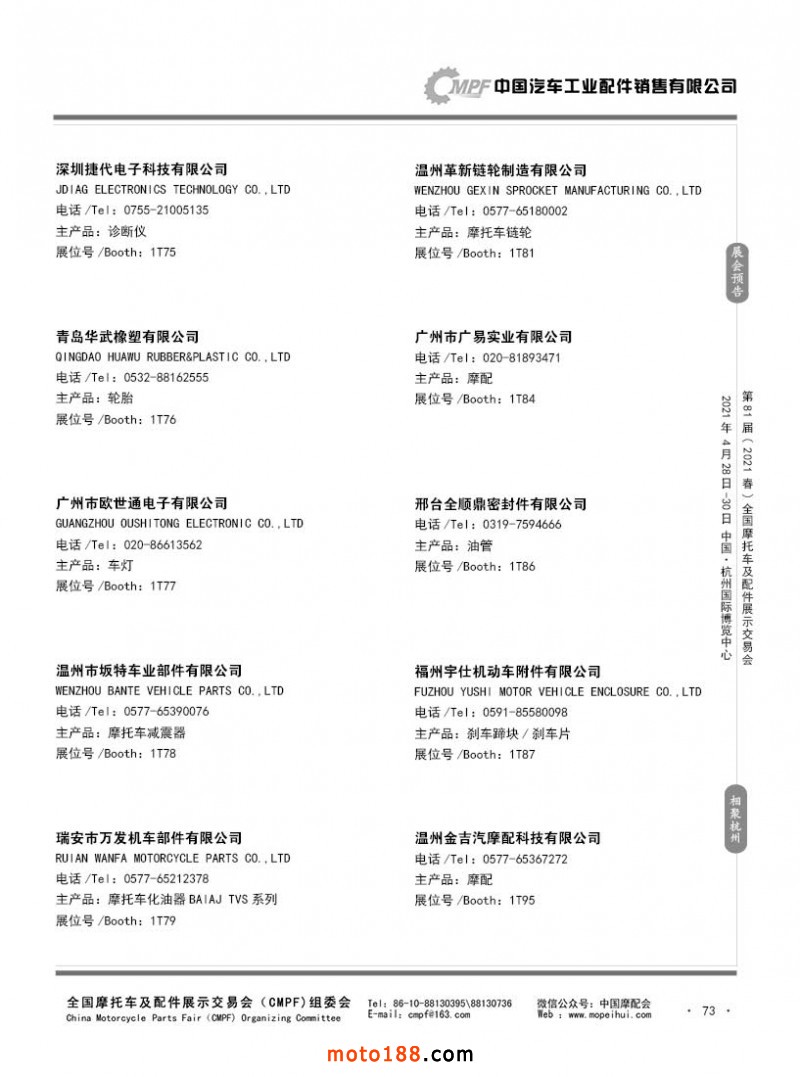 內(nèi)73 第80屆(2020秋)全國(guó)摩托車及配件展示交易會(huì)-廣州站參展企業(yè)信息
