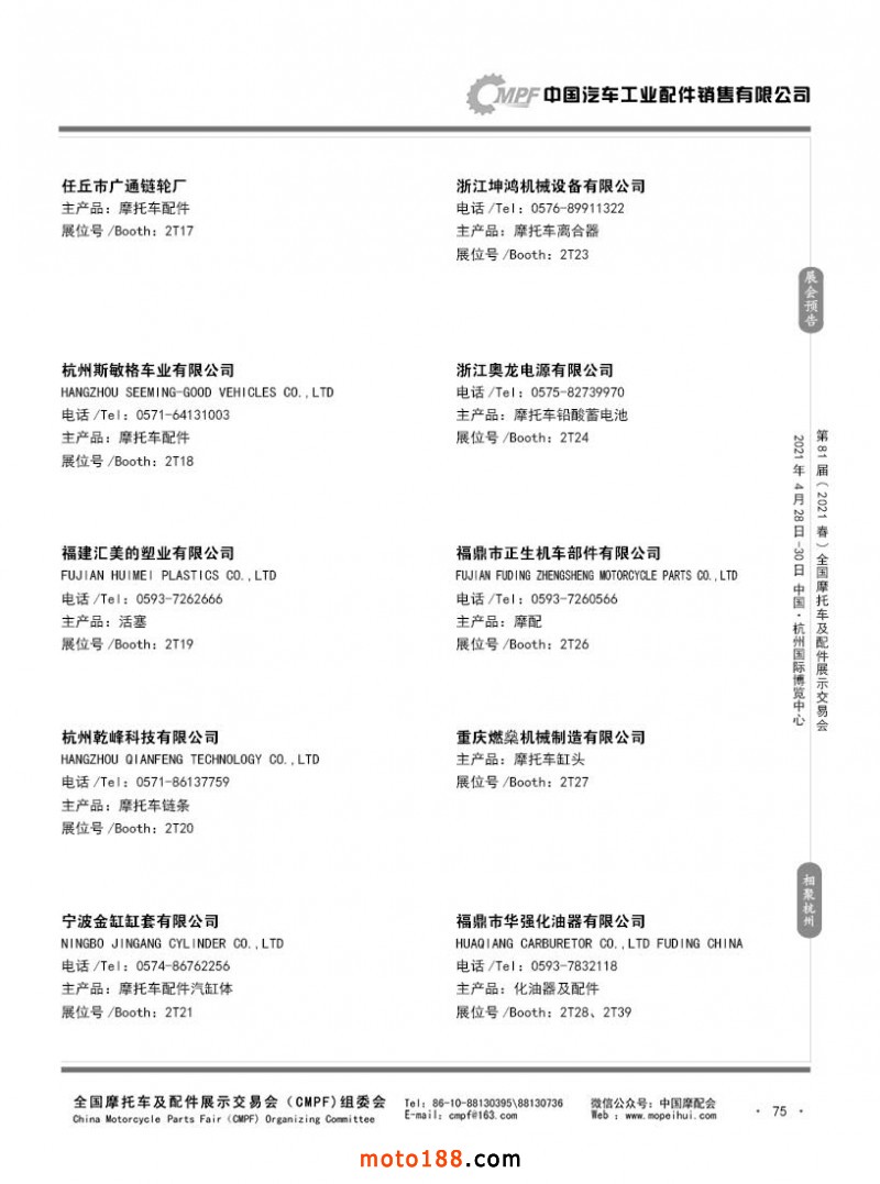 內(nèi)75 第80屆(2020秋)全國摩托車及配件展示交易會-廣州站參展企業(yè)信息
