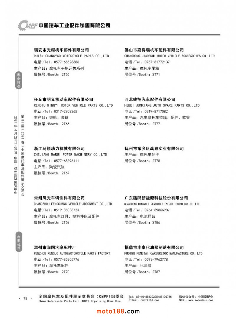 內78 第80屆(2020秋)全國摩托車及配件展示交易會-廣州站參展企業(yè)信息