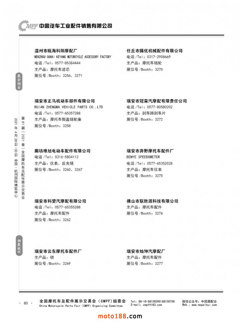 內(nèi)80 第80屆(2020秋)全國摩托車及配件展示交易會-廣州站參展企業(yè)信息