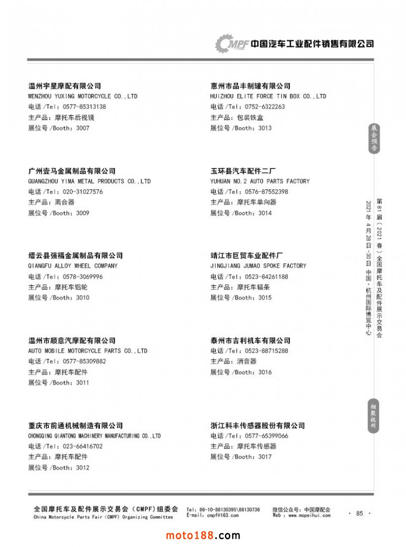 內85 第80屆(2020秋)全國摩托車及配件展示交易會-廣州站參展企業(yè)信息