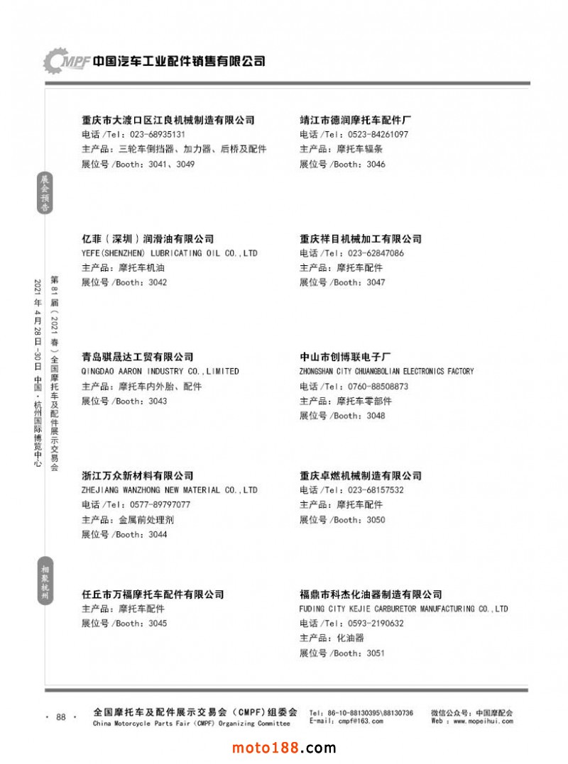 內(nèi)88 第80屆(2020秋)全國摩托車及配件展示交易會-廣州站參展企業(yè)信息