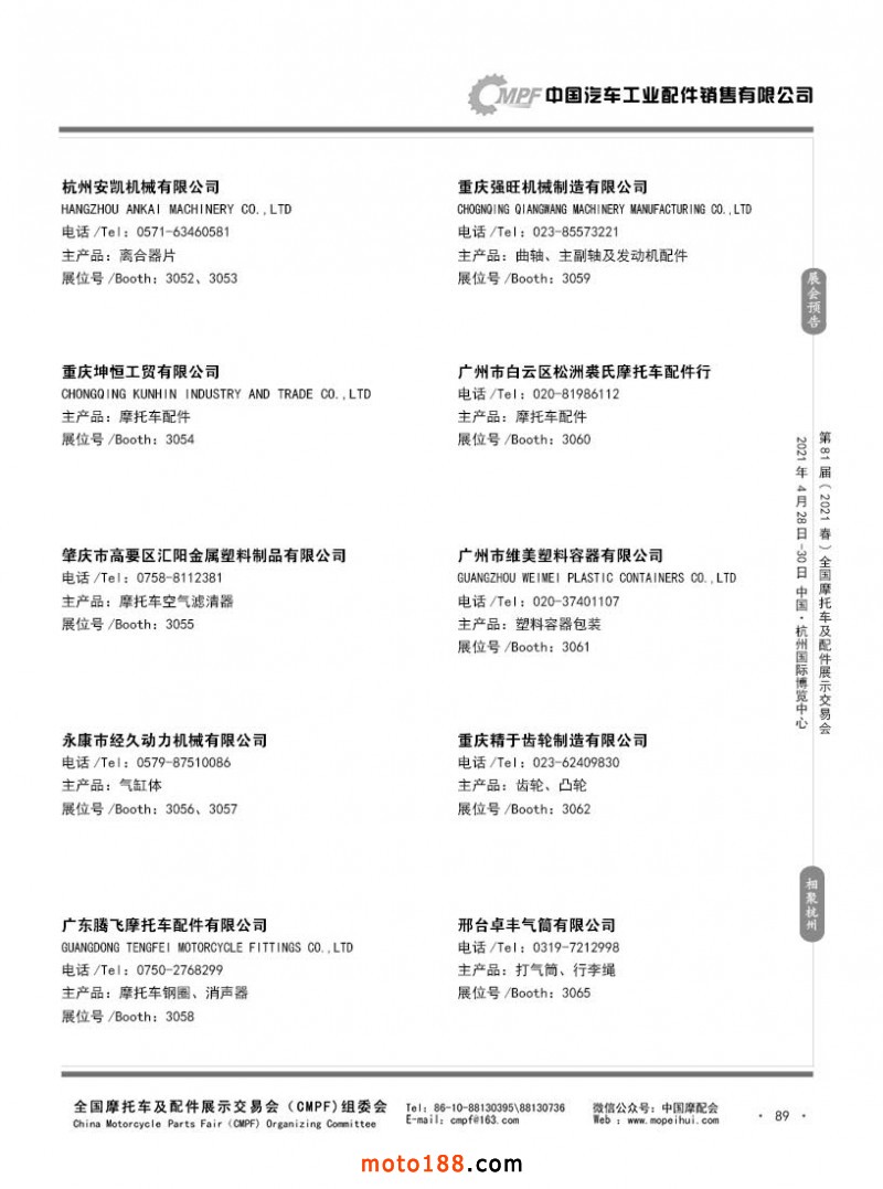 內(nèi)89 第80屆(2020秋)全國(guó)摩托車及配件展示交易會(huì)-廣州站參展企業(yè)信息