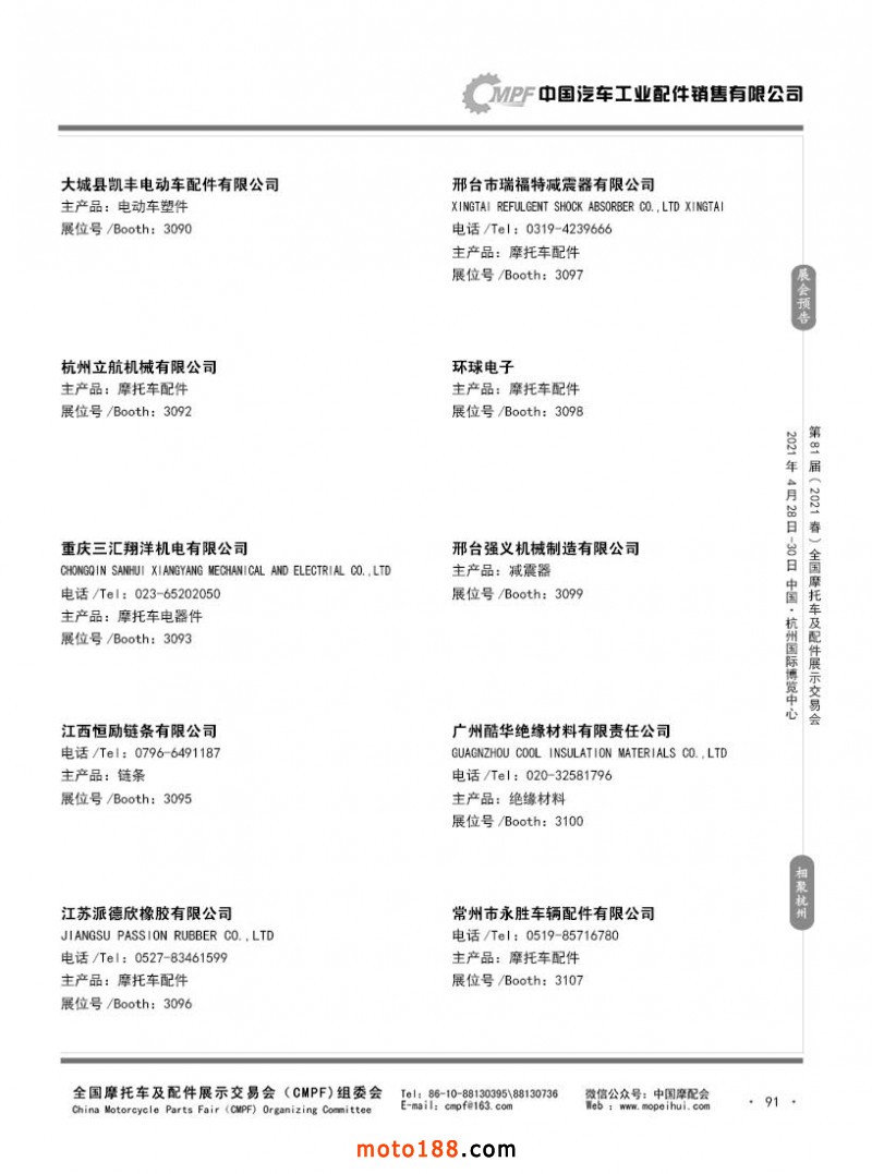 內(nèi)91 第80屆(2020秋)全國(guó)摩托車及配件展示交易會(huì)-廣州站參展企業(yè)信息