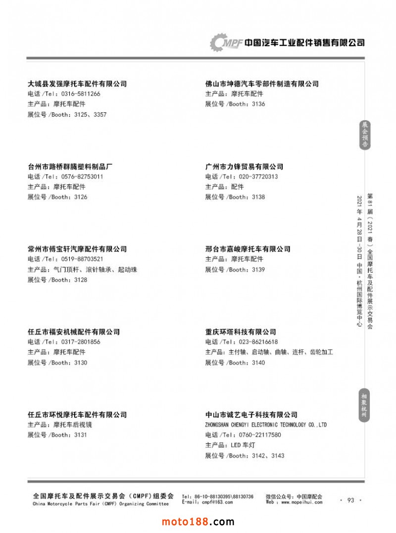 內(nèi)93 第80屆(2020秋)全國摩托車及配件展示交易會(huì)-廣州站參展企業(yè)信息