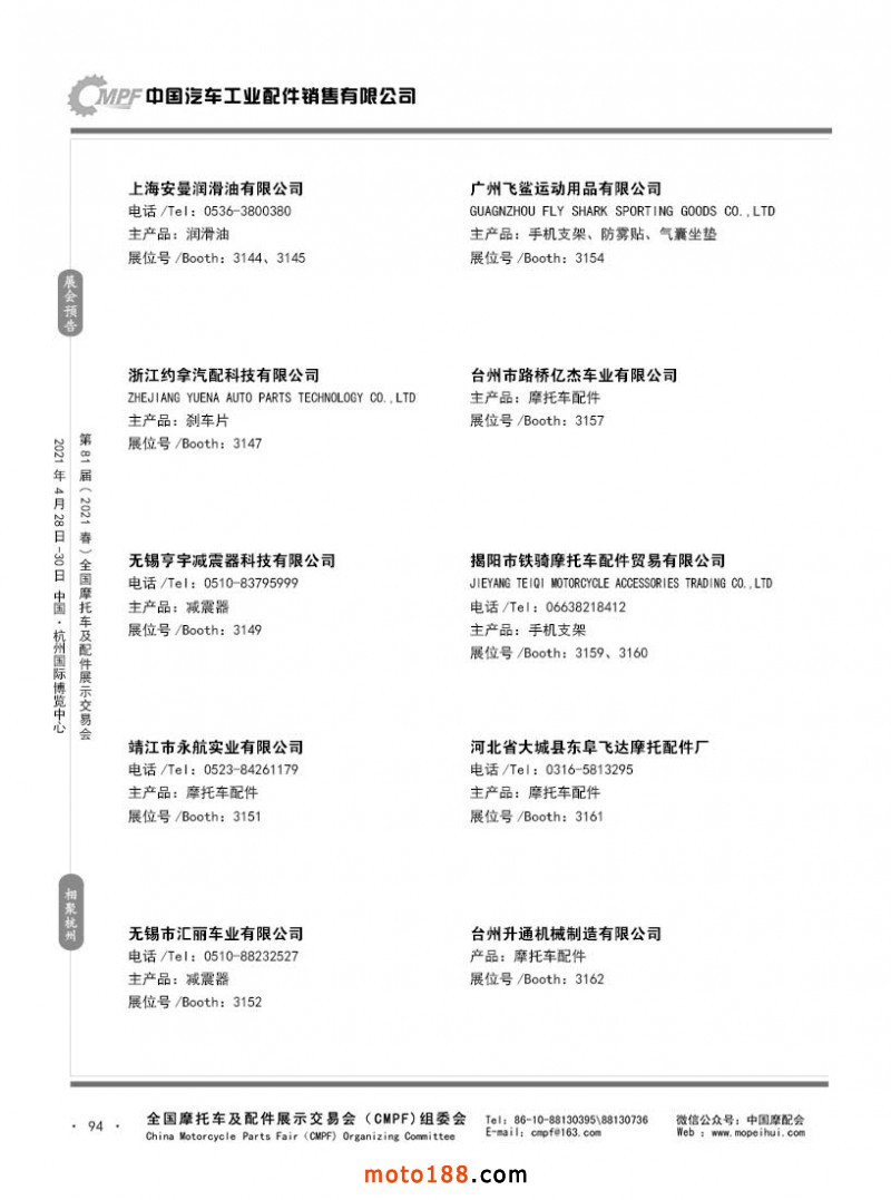 內(nèi)94 第80屆(2020秋)全國(guó)摩托車(chē)及配件展示交易會(huì)-廣州站參展企業(yè)信息