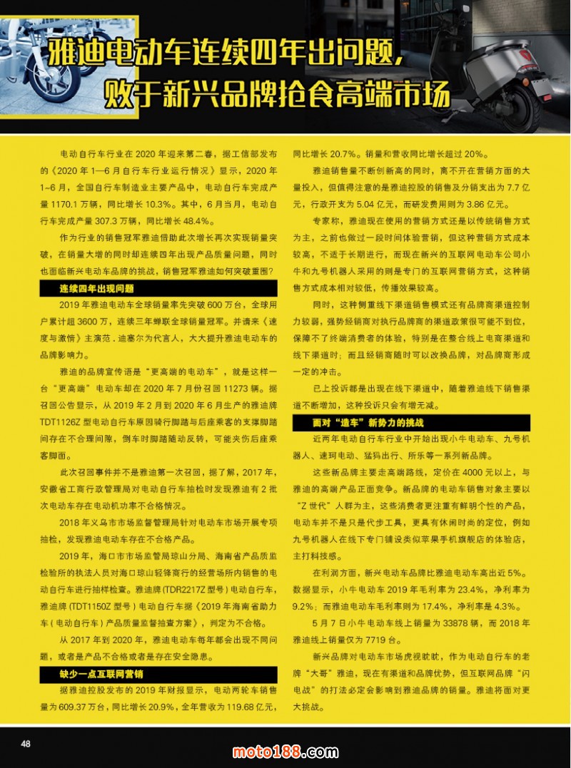 內(nèi)48 雅迪電動(dòng)車(chē)連續(xù)四年出問(wèn)題,敗于新興品牌搶食高端市場(chǎng)