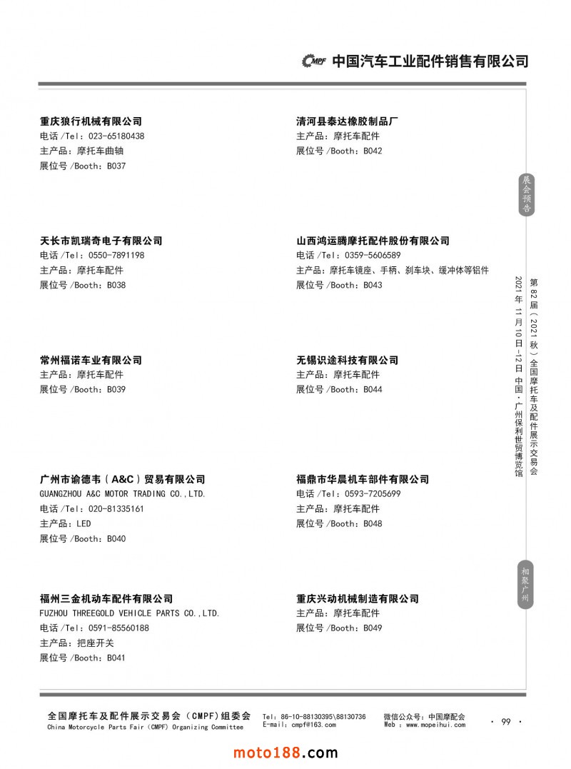 內(nèi)99 第81屆(2021春)全國摩托車及配件展示交易會-杭州站參展企業(yè)信息