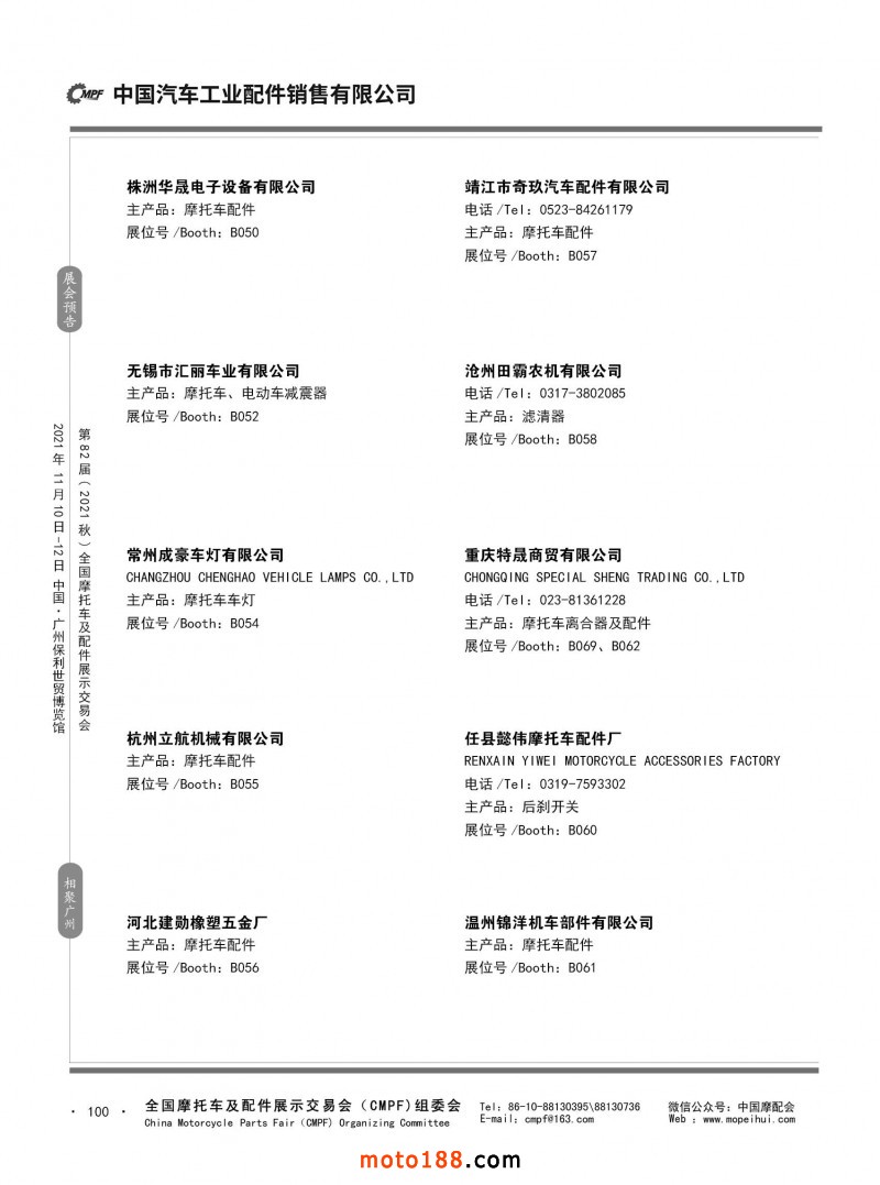 內(nèi)100 第81屆(2021春)全國摩托車及配件展示交易會-杭州站參展企業(yè)信息