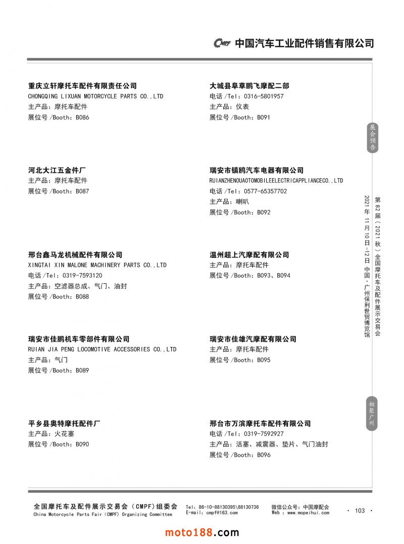 內(nèi)103 第81屆(2021春)全國(guó)摩托車(chē)及配件展示交易會(huì)-杭州站參展企業(yè)信息