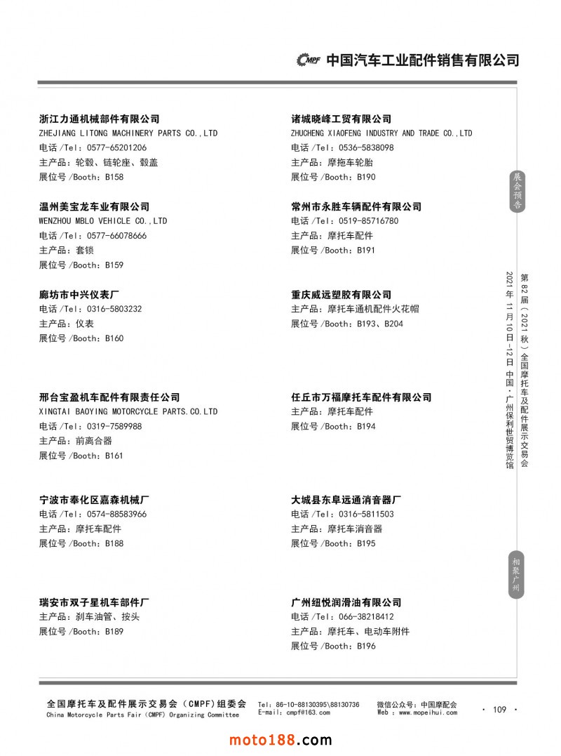 內(nèi)109 第81屆(2021春)全國(guó)摩托車(chē)及配件展示交易會(huì)-杭州站參展企業(yè)信息