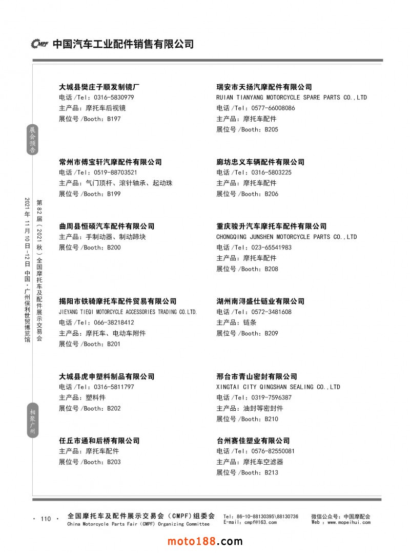 內(nèi)110 第81屆(2021春)全國摩托車及配件展示交易會-杭州站參展企業(yè)信息