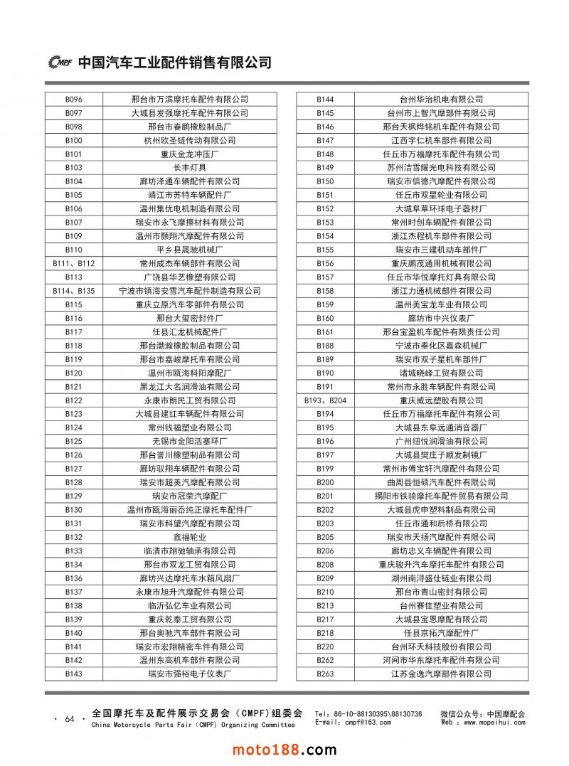 內(nèi)64 第81屆(2021春)全國(guó)摩托車及配件展示交易會(huì)-杭州站參展單位名錄