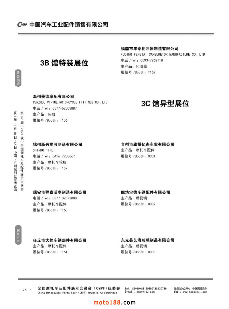 內(nèi)76 第81屆(2021春)全國摩托車及配件展示交易會-杭州站參展企業(yè)信息