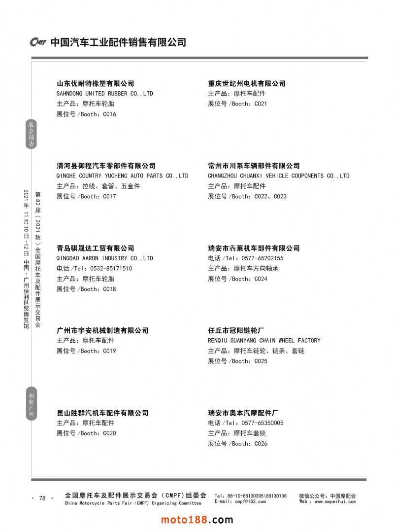 內(nèi)78 第81屆(2021春)全國摩托車及配件展示交易會-杭州站參展企業(yè)信息