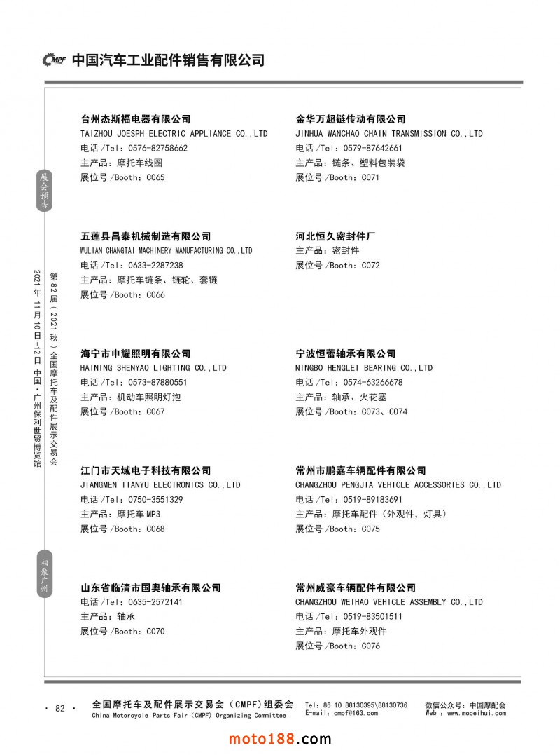 內(nèi)82 第81屆(2021春)全國摩托車及配件展示交易會-杭州站參展企業(yè)信息