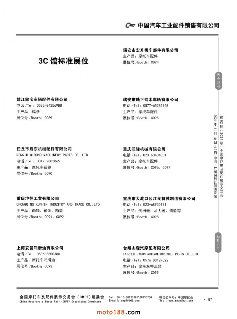 內(nèi)87 第81屆(2021春)全國摩托車及配件展示交易會(huì)-杭州站參展企業(yè)信息