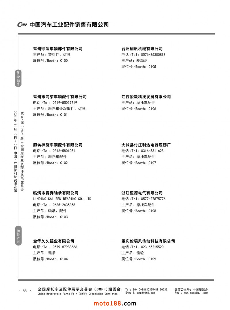 內(nèi)88 第81屆(2021春)全國摩托車及配件展示交易會-杭州站參展企業(yè)信息