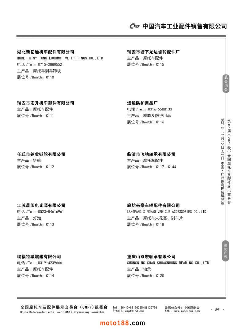 內(nèi)89 第81屆(2021春)全國(guó)摩托車及配件展示交易會(huì)-杭州站參展企業(yè)信息