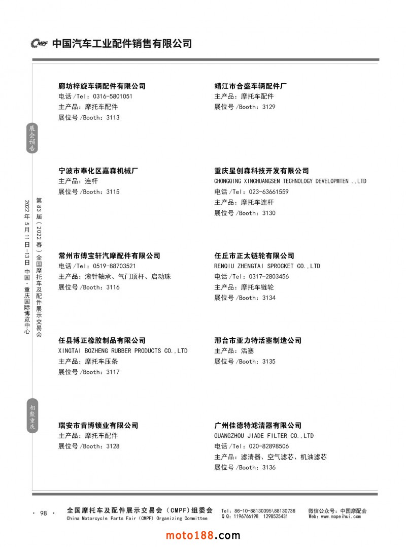 內(nèi)98 第82屆(2021秋)全國摩托車及配件展示交易會-廣州站參展企業(yè)信息