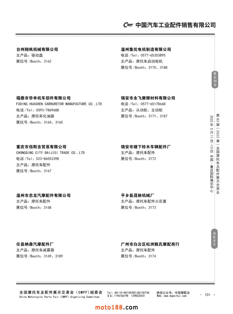 內(nèi)101 第82屆(2021秋)全國摩托車及配件展示交易會-廣州站參展企業(yè)信息