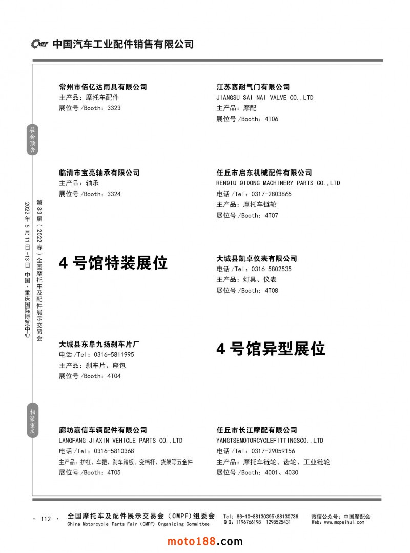 內(nèi)112 第82屆(2021秋)全國摩托車及配件展示交易會(huì)-廣州站參展企業(yè)信息