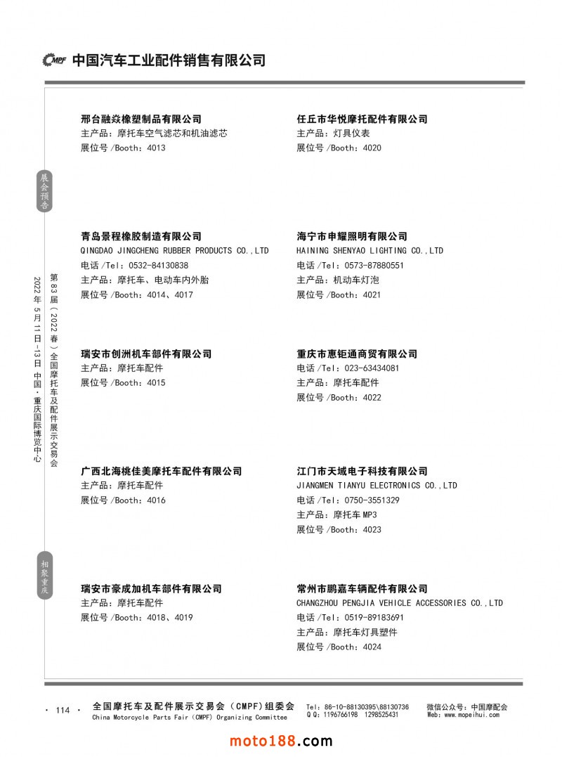 內(nèi)114 第82屆(2021秋)全國摩托車及配件展示交易會-廣州站參展企業(yè)信息