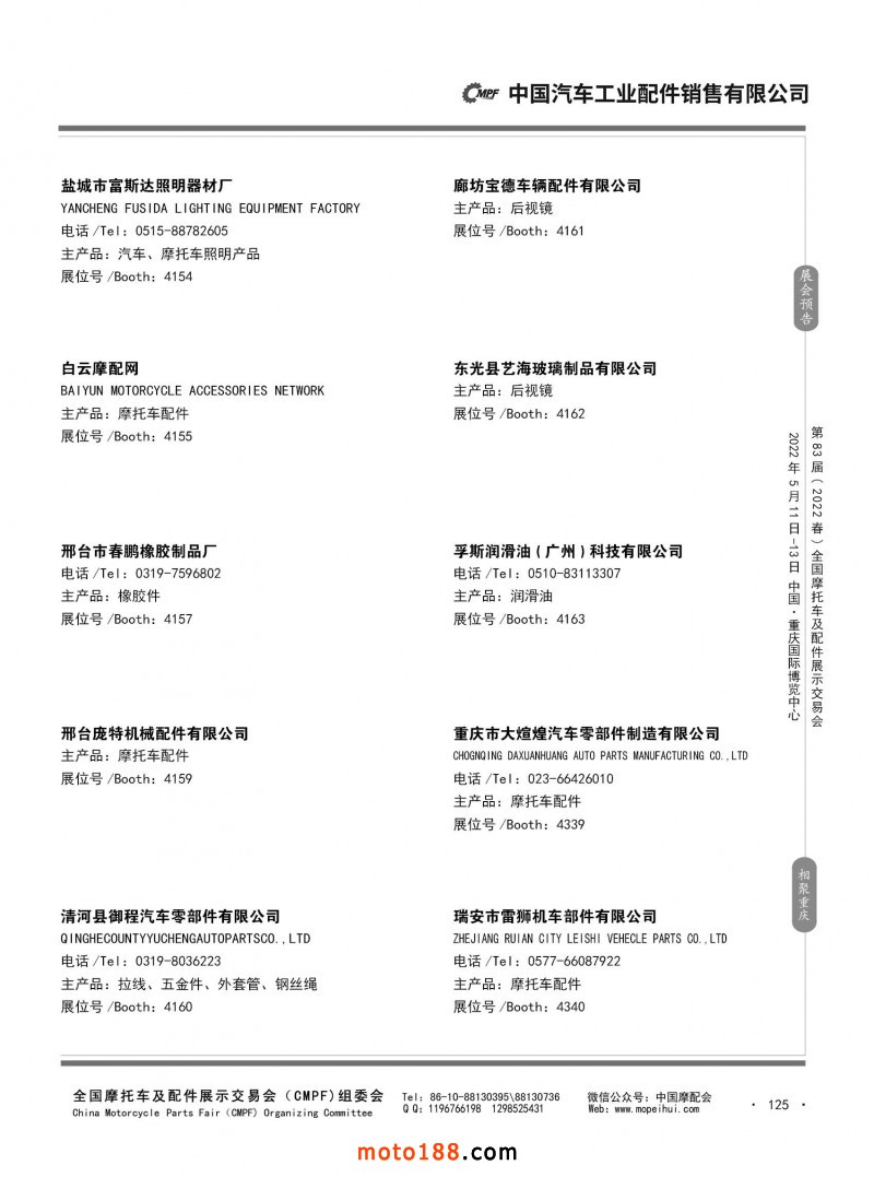 內(nèi)125 第82屆(2021秋)全國摩托車及配件展示交易會(huì)-廣州站參展企業(yè)信息