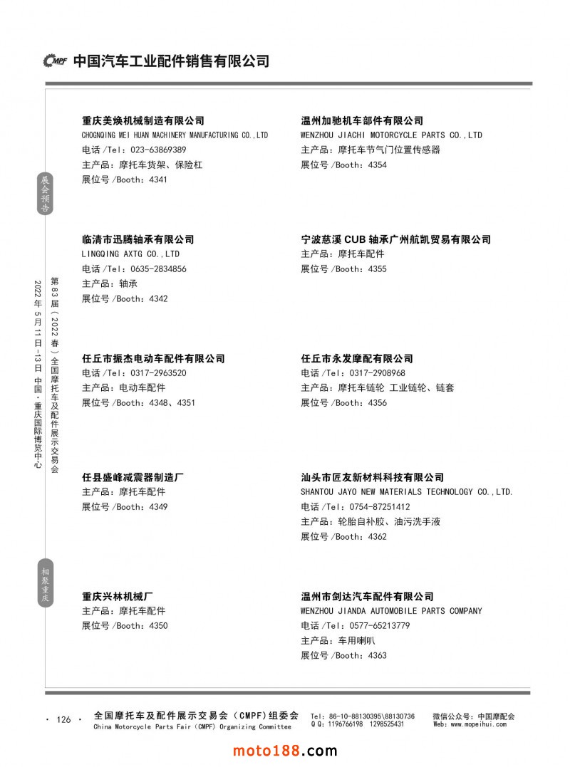 內126 第82屆(2021秋)全國摩托車及配件展示交易會-廣州站參展企業(yè)信息