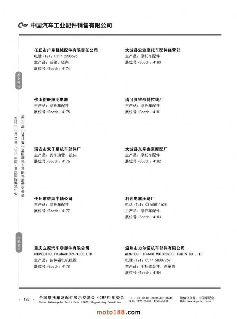 內(nèi)128 第82屆(2021秋)全國摩托車及配件展示交易會-廣州站參展企業(yè)信息