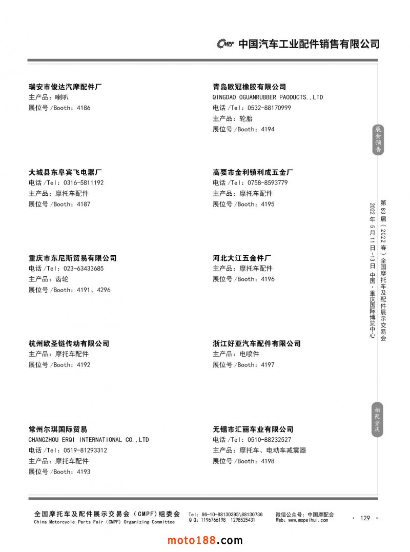 內129 第82屆(2021秋)全國摩托車及配件展示交易會-廣州站參展企業(yè)信息