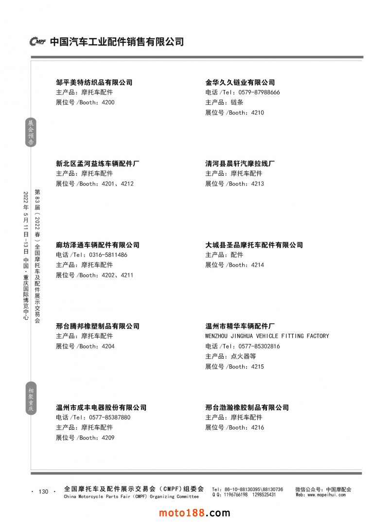 內130 第82屆(2021秋)全國摩托車及配件展示交易會-廣州站參展企業(yè)信息