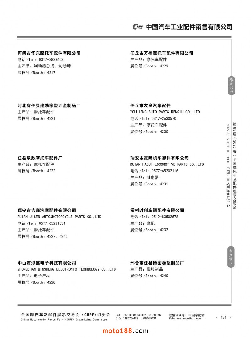 內(nèi)131 第82屆(2021秋)全國(guó)摩托車(chē)及配件展示交易會(huì)-廣州站參展企業(yè)信息