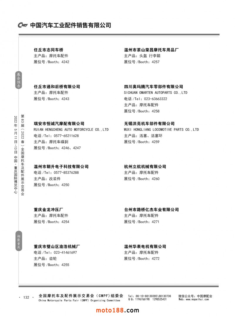 內(nèi)132 第82屆(2021秋)全國摩托車及配件展示交易會-廣州站參展企業(yè)信息