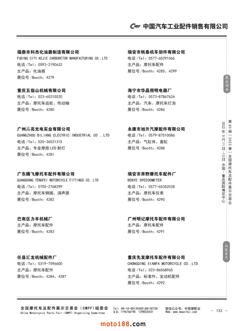 內(nèi)133 第82屆(2021秋)全國摩托車及配件展示交易會-廣州站參展企業(yè)信息