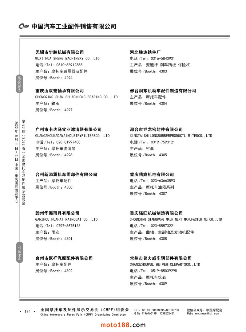 內(nèi)134 第82屆(2021秋)全國摩托車及配件展示交易會-廣州站參展企業(yè)信息